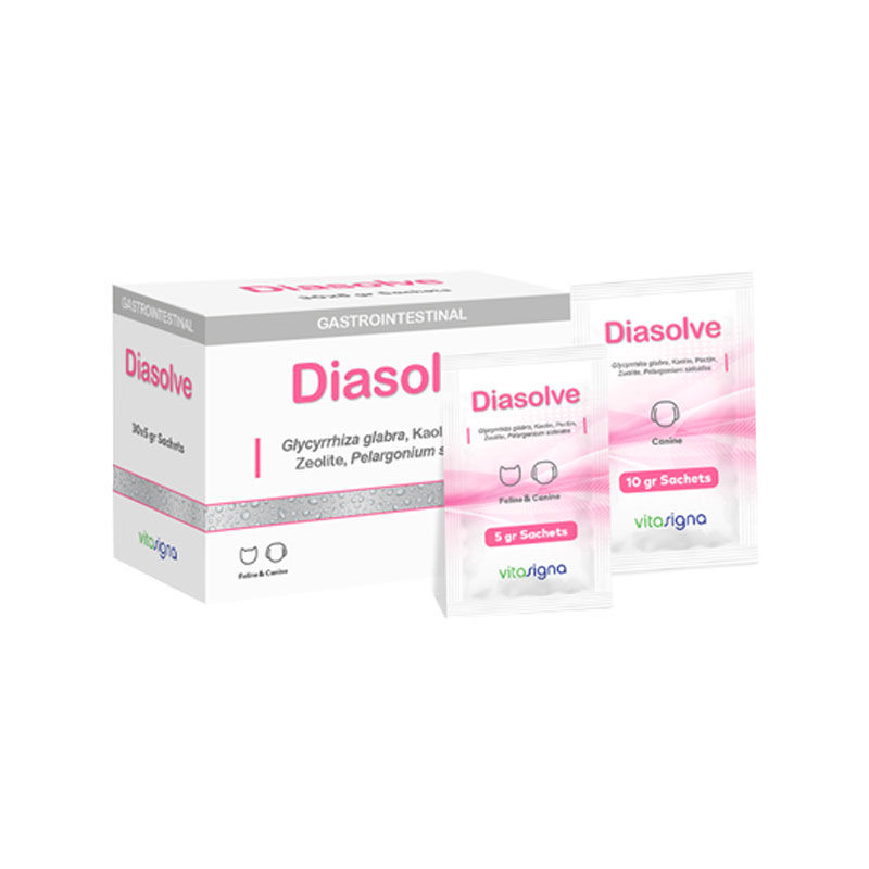 Diasolve, kedi köpeklerin çeşitli rahatsızlıklarında bağırsak sistemine destek olarak, bağışıklık sistemini güçlendirmek ve ishalin/kabızlığın giderilmesi amacıyla geliştirilmiş eşsiz bir formülasyondur.